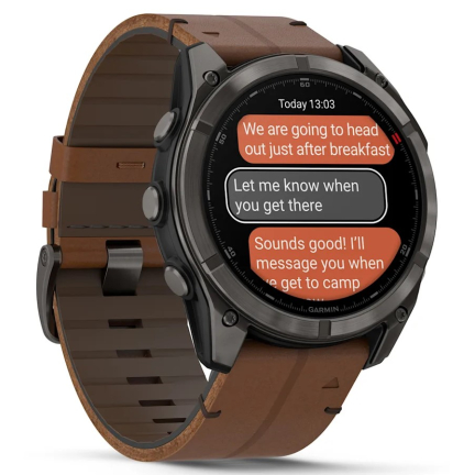Garmin Fenix 8 Pro - 51 mm, AMOLED Sapphire, Carbon grey DLC titanium with Chestnut leather band (010-03199-40)